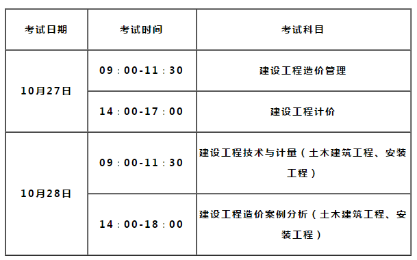 2018年度一級造價工程師職業(yè)資格考試具體考試時間如下: