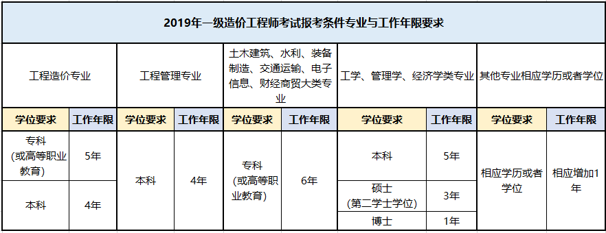 湖北武漢2019年一級造價(jià)工程師考試需要幾年工作經(jīng)驗(yàn)?
