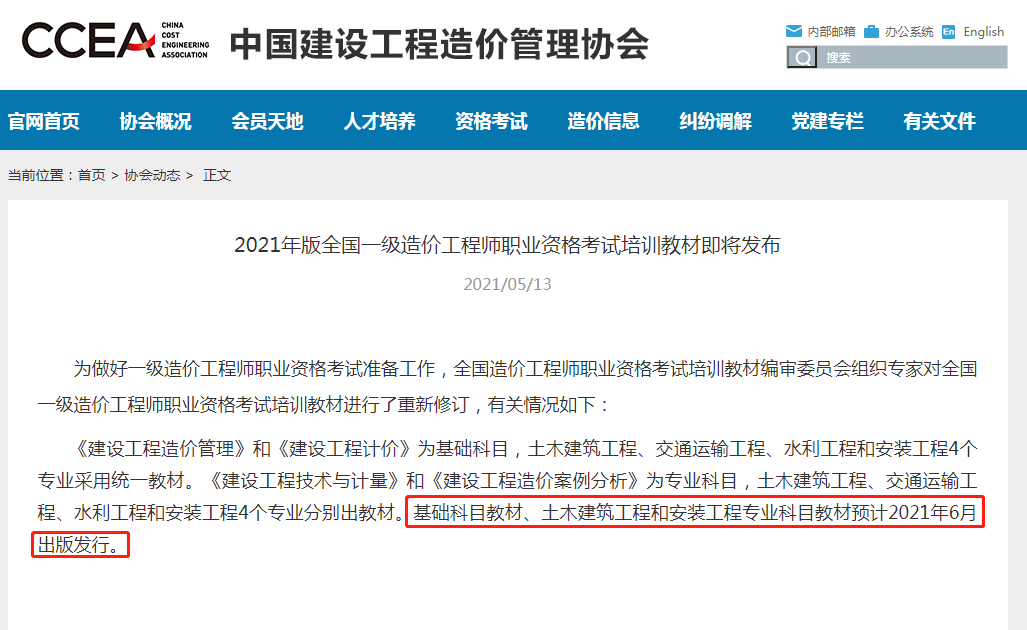 2021年全國一級造價工程師職業(yè)資格考試培訓(xùn)教材預(yù)計7月即將發(fā)布