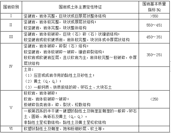 隧道工程按現(xiàn)行隧道設(shè)計、施工技術(shù)規(guī)范將圍巖分為六級,即Ⅰ~Ⅵ級。