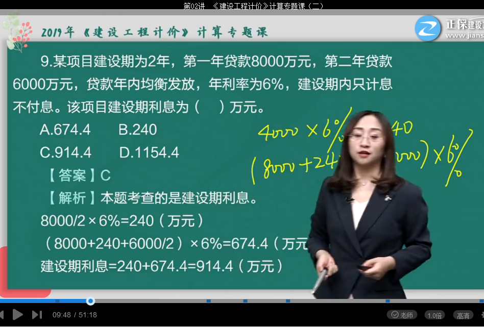 看李娜 讓你穩(wěn)穩(wěn)過計價!  【試題9】某新建項目,建設期為2年,分年均衡進行貸款,第一年貸款2000萬元,第二年貸款3000萬元。在建設期內貸款利息只計息不支付,年利率為10%的情況下,該項目應計建設期貸款利息為(?。┤f元。