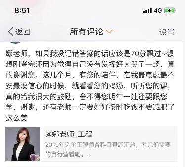 看到學(xué)員們都在工程計(jì)價(jià)上取得了不錯(cuò)的成績(jī),網(wǎng)校的老師和小編們也是非常開(kāi)心!2020年我們將繼續(xù)提供更加優(yōu)質(zhì)的課程和服務(wù),愿一級(jí)造價(jià)工程師考試對(duì)于我們的學(xué)員們來(lái)說(shuō),永遠(yuǎn)不難!2020年的工程計(jì)價(jià)學(xué)員們,跟著我們的美娜老師,沖鴨!
