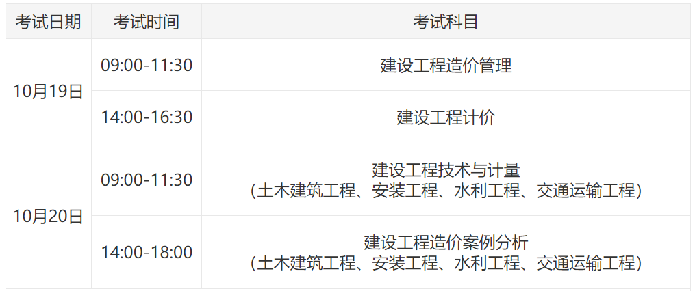 1、考前一定要確認(rèn)好各科目考試時間,2024年考試時間10月19日-20日,具體考試科目如下: