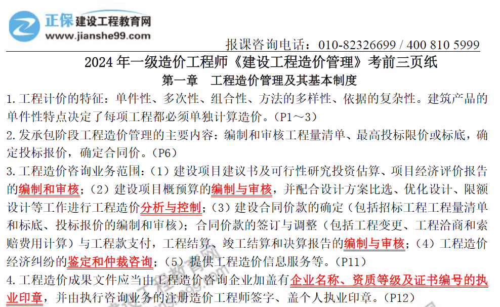 【三頁(yè)紙免費(fèi)領(lǐng)】2024年一級(jí)造價(jià)工程師考前神助攻!