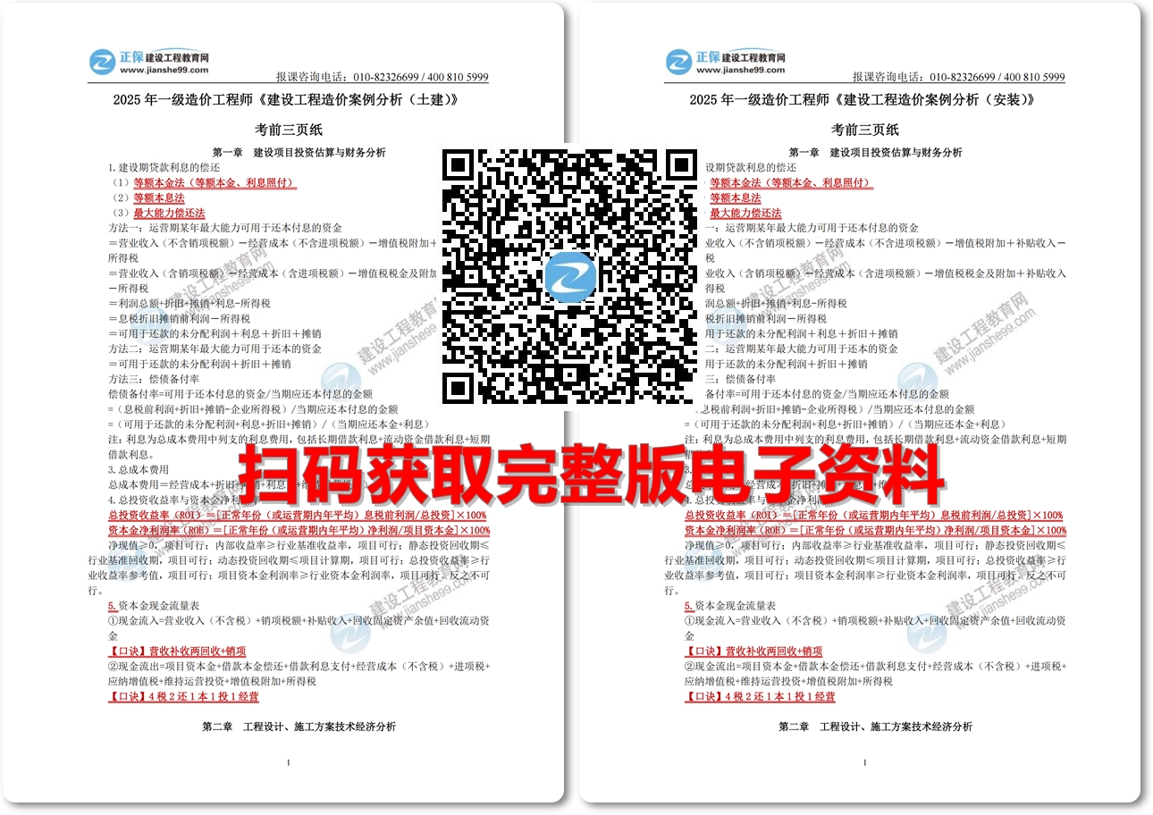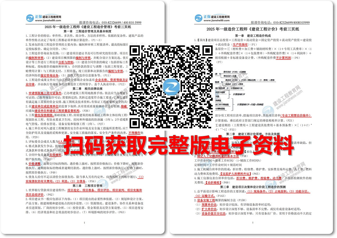 別再猶豫,抓住最后的備考時機(jī)。掃碼免費領(lǐng)取考前三頁紙,讓它們成為你沖刺備考的加速器。相信自己,通過努力和科學(xué)備考,你一定能在2025年的一級造價師考試中取得優(yōu)異的成績!