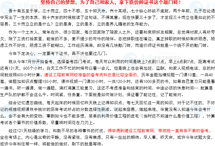 ?堅持自己的夢想,為了自己和家人,拿下造價師證書這個敲門磚!
