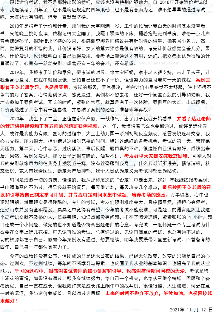 #一級(jí)造價(jià)師# 四年的備考之路,感謝網(wǎng)校的一路陪伴!