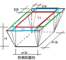 挖基礎(chǔ)土方定額工程量(有放坡、工作面)的計算: