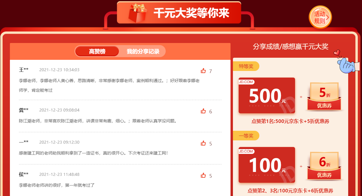 一造分享成績(jī)贏千元大獎(jiǎng)