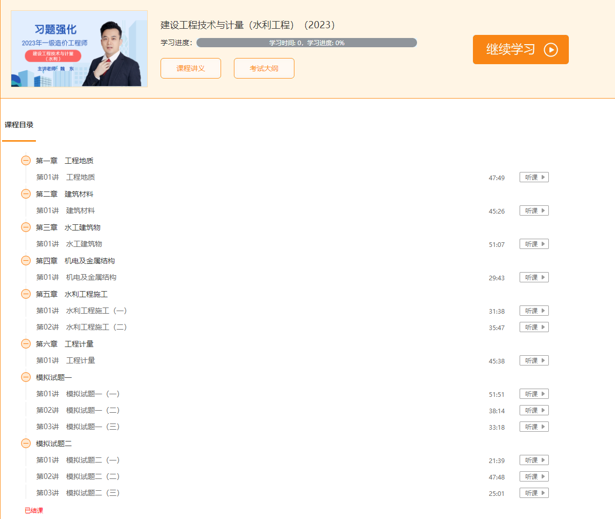 注:課程只包含水利計(jì)量、交通計(jì)量、水利案例、交通案例。