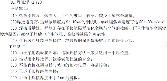 【解析】由于埋弧焊溶深大,生產(chǎn)效率髙,機(jī)械化操作的程度高,因而適于焊接中厚板結(jié)構(gòu)的長焊縫和大直徑圓筒的環(huán)焊縫,尤其適用于大批量生產(chǎn)。參見教材P11。