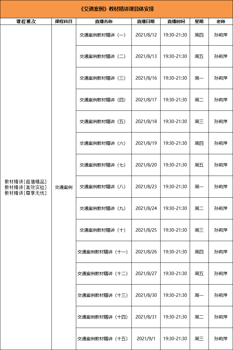 目前疫情形勢嚴峻,孫莉萍老師所在小區(qū)管控,無法為大家錄制教材精講班課程,但老師和網(wǎng)校為了讓同學們盡快聽新課,快速掌握備考內(nèi)容,為同學們安排了教材精講直播課,由美女老師孫莉萍通過直播領學的方式帶領大家學習!購買建設工程教育網(wǎng)交通全科超值精品班、高效實驗班、尊享無憂班,交通案例單科超值精品班、高效實驗班、尊享無憂班的學員均可聽課哦!