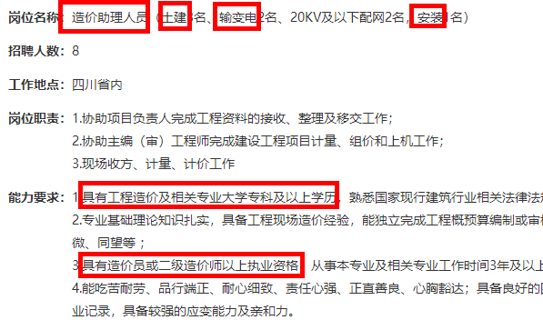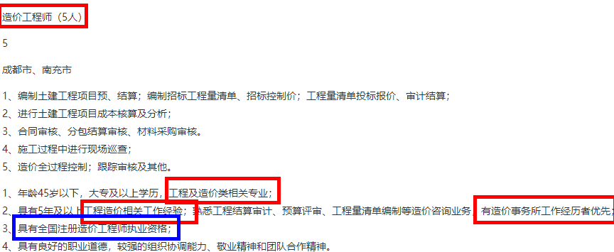 從上面的條件中可以看出,基本上招聘要求都是需要具有造價相關(guān)的經(jīng)驗(yàn),或者至少需要有二級造價師證書,也有一些直接說明要有一級造價師證書,且待遇優(yōu)厚。這說明目前一級造價師還是非常稀缺的,市場還是需要大量的人才,所以目前來看一級造價師還是很值得大家去考的,證書含金量也是依然很高。