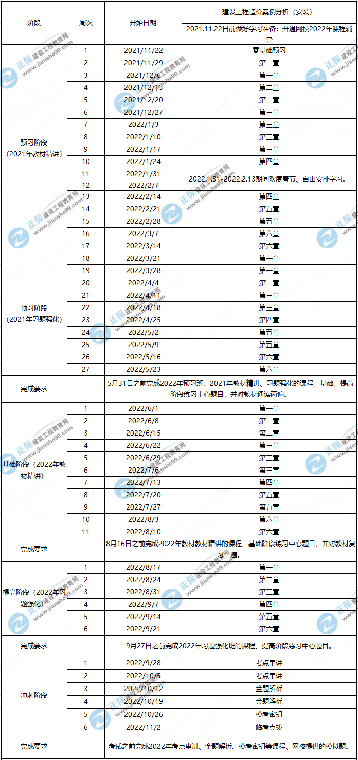 備考從計(jì)劃開始!2022一造安裝案例學(xué)習(xí)計(jì)劃表