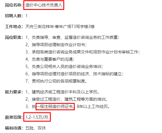 某大型企業(yè)最近又開始招聘了,持有一級造價(jià)師證書的朋友們機(jī)會來了,你離升職加薪就差一個(gè)一級造價(jià)工程師證書。