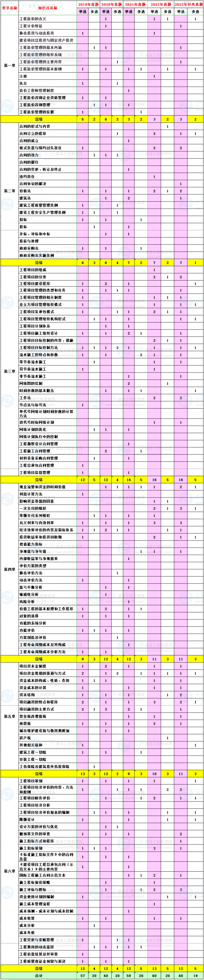 2019-2022年一級造價師造價管理分值分布詳情
