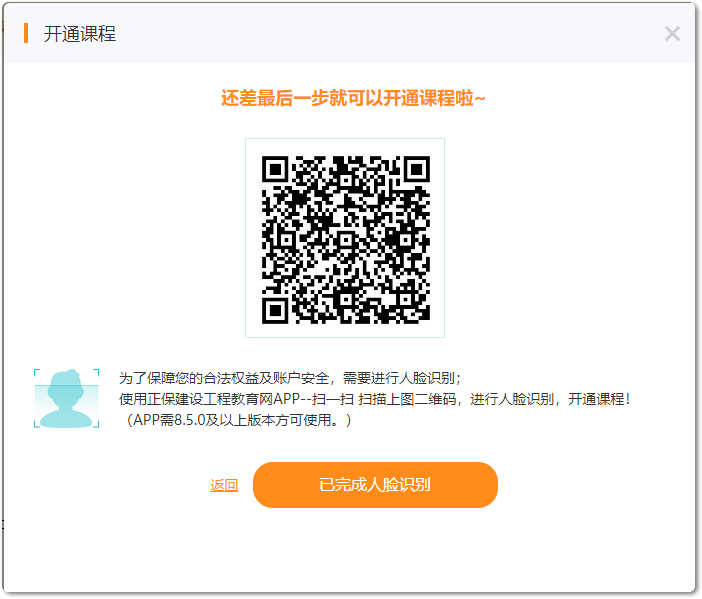 3.掃碼進行人臉識別,識別后進入看課;提示:APP需8.5.0及以上版本方可使用。