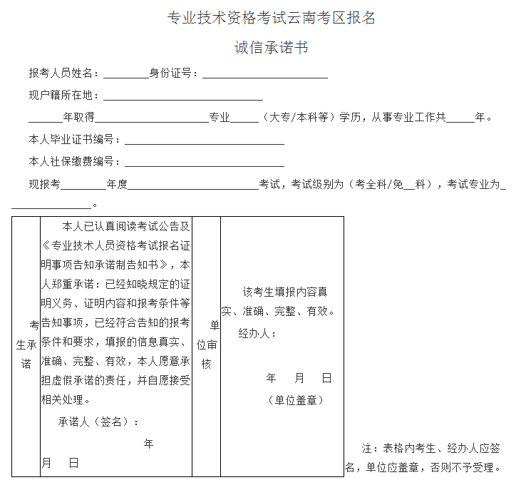 附件:專業(yè)技術(shù)資格考試云南考區(qū)報名誠信承諾書