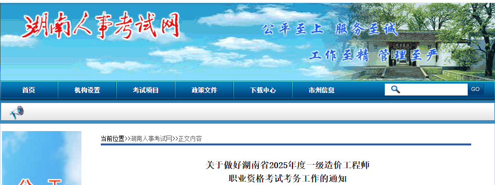 湖南省2025年度一級造價工程師職業(yè)資格考試考務(wù)工作的通知