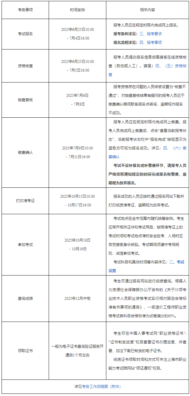 根據(jù)《人力資源社會(huì)保障部辦公廳關(guān)于2025年度專(zhuān)業(yè)技術(shù)人員職業(yè)資格考試工作計(jì)劃及有關(guān)事項(xiàng)的通知》(人社廳發(fā)〔2025〕1號(hào))安排,結(jié)合本市實(shí)際,現(xiàn)將上海市2025年度全國(guó)一級(jí)造價(jià)工程師職業(yè)資格考試有關(guān)事宜通知如下: