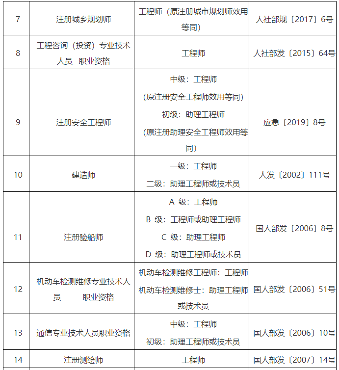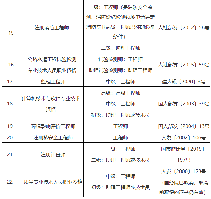 第二十六條工程技術(shù)人才取得的工程領(lǐng)域?qū)I(yè)技術(shù)類職業(yè)資格,可對(duì)應(yīng)相應(yīng)層級(jí)的職稱(見(jiàn)附件),并可作為申報(bào)高一級(jí)職稱的條件。