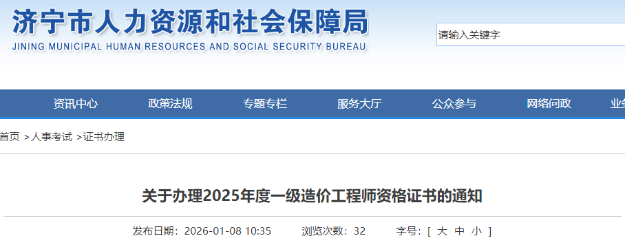 山東濟(jì)寧關(guān)于辦理2025年度一級造價(jià)工程師資格證書的通知