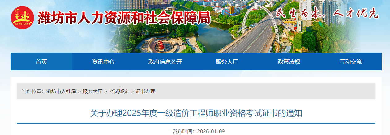 山東省濰坊市2025年度一級造價工程師職業(yè)資格考試證書辦理通知