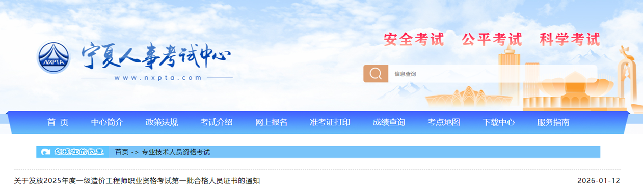 寧夏考區(qū)2025年度一級造價工程師職業(yè)資格考試第一批合格人員證書發(fā)放通知