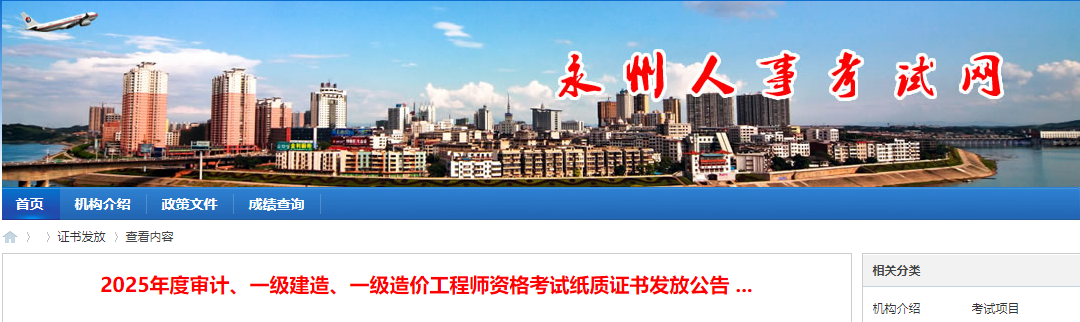 湖南省永州2025年度一級(jí)造價(jià)工程師資格考試紙質(zhì)證書發(fā)放公告