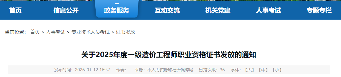關(guān)于2025年度一級造價(jià)工程師職業(yè)資格證書發(fā)放的通知