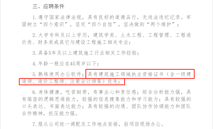 我們看到在應(yīng)聘條件的第五條里專門寫出——具有建筑施工領(lǐng)域執(zhí)業(yè)資格證書(含一級建造師、造價工程師、注冊會計師等)優(yōu)先;這個雖然隱藏在眾多的應(yīng)聘條件里面,甚至沒有放在最顯眼的位置,但無疑這才是中國能源建設(shè)集團(tuán)東北電力第二工程有限公司本次招聘核心條件之一。