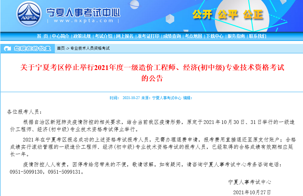 2021年一級(jí)造價(jià)師考試即將來臨,原定寧夏2021年一級(jí)造價(jià)師考試時(shí)間在2021年10月30日-2021年10月31日,但是因?yàn)橐咔?,寧?/span>人事考試中心發(fā)布2021年一級(jí)造價(jià)師??纪ㄖ?,并且提示2021年在寧夏考區(qū)報(bào)名成功的一級(jí)造價(jià)師考試報(bào)考人員,無需辦理退費(fèi)申請(qǐng),報(bào)考費(fèi)用直接退還至原支付賬戶;合格成績實(shí)行滾動(dòng)管理的一級(jí)造價(jià)工程師考試的報(bào)考人員,已經(jīng)取得的合格成績有效期相應(yīng)延長一年。