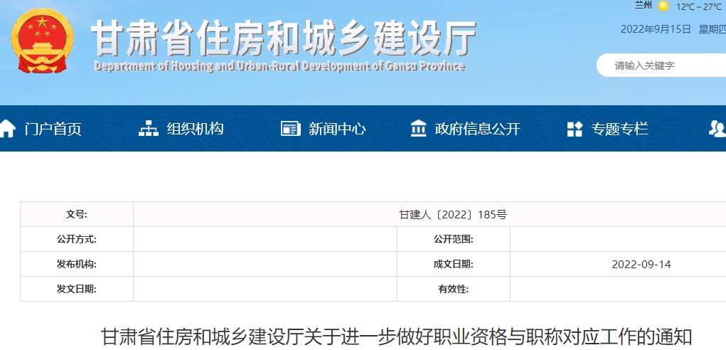 甘肅省住房和城鄉(xiāng)建設(shè)廳關(guān)于進(jìn)一步做好職業(yè)資格與職稱對應(yīng)工作的通知