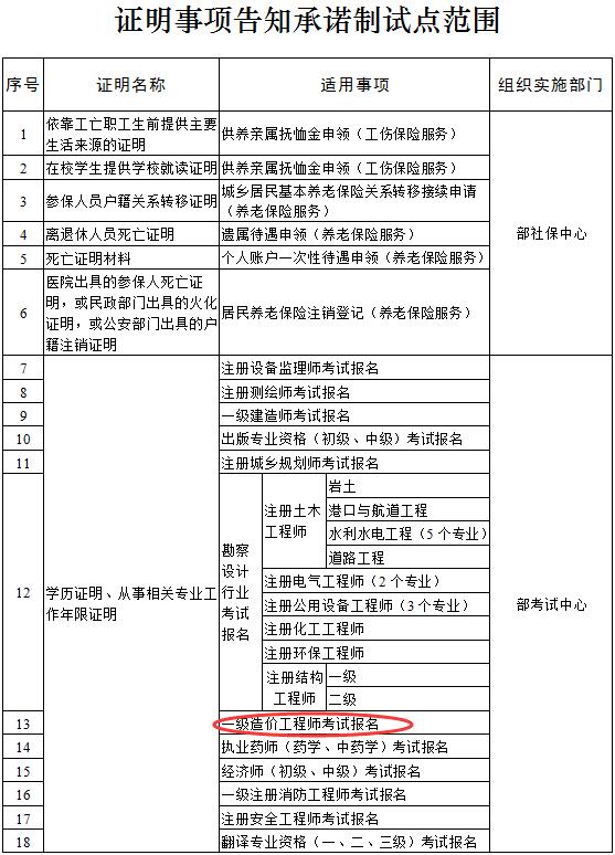 好消息!吉林2019年一級造價工程師考試報名證明事項告知承諾制試點,一級造價工程師考試報名無需提供學(xué)歷證明、從事相關(guān)專業(yè)工作年限證明。