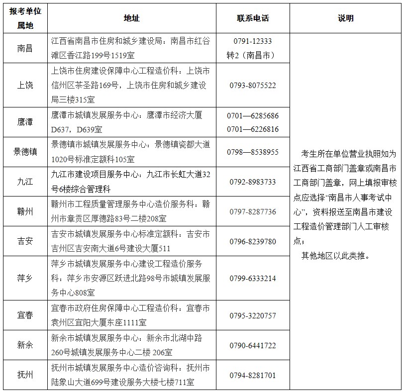 3.江西省一級(jí)造價(jià)工程師土建、安裝專業(yè)報(bào)考資格送審地址及聯(lián)系電話表