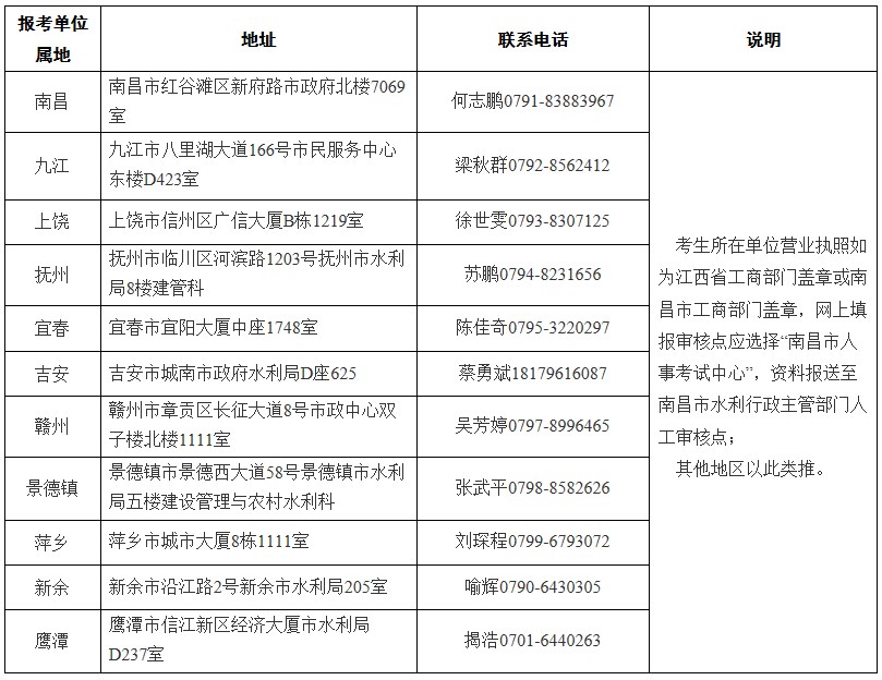 4.江西省一級(jí)造價(jià)工程師水利專業(yè)報(bào)考資格送審地址及聯(lián)系電話表