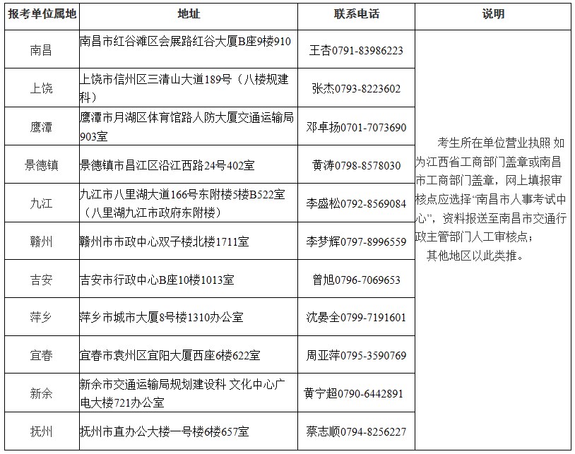 5.江西省一級(jí)造價(jià)工程師交通專業(yè)報(bào)考資格送審地址及聯(lián)系電話表