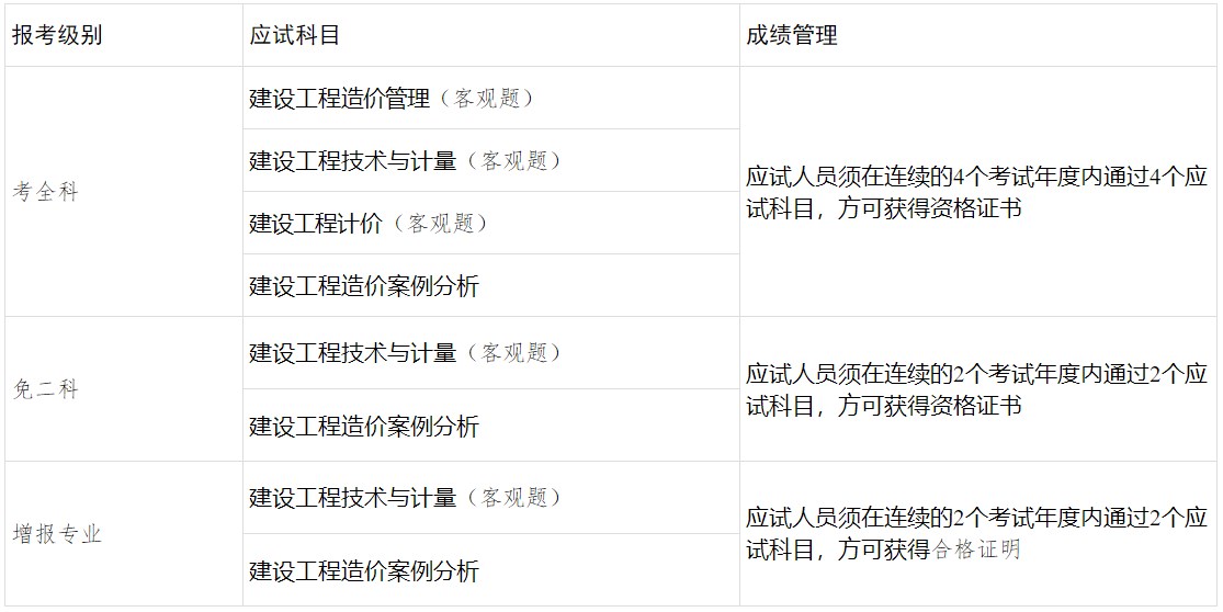 注:《建設工程造價管理》和《建設工程計價》為基礎科目;《建設工程技術(shù)與計量》和《建設工程造價案例分析》為專業(yè)科目,分為土木建筑工程、交通運輸工程、水利工程和安裝工程4個專業(yè)類別,報考人員可根據(jù)實際工作需要選報其一。