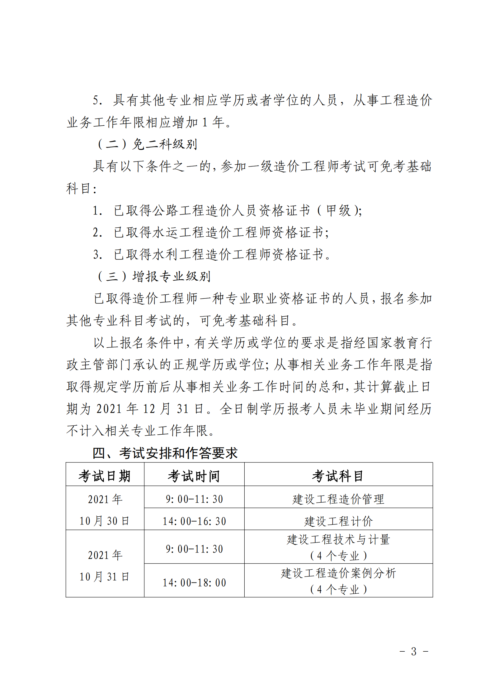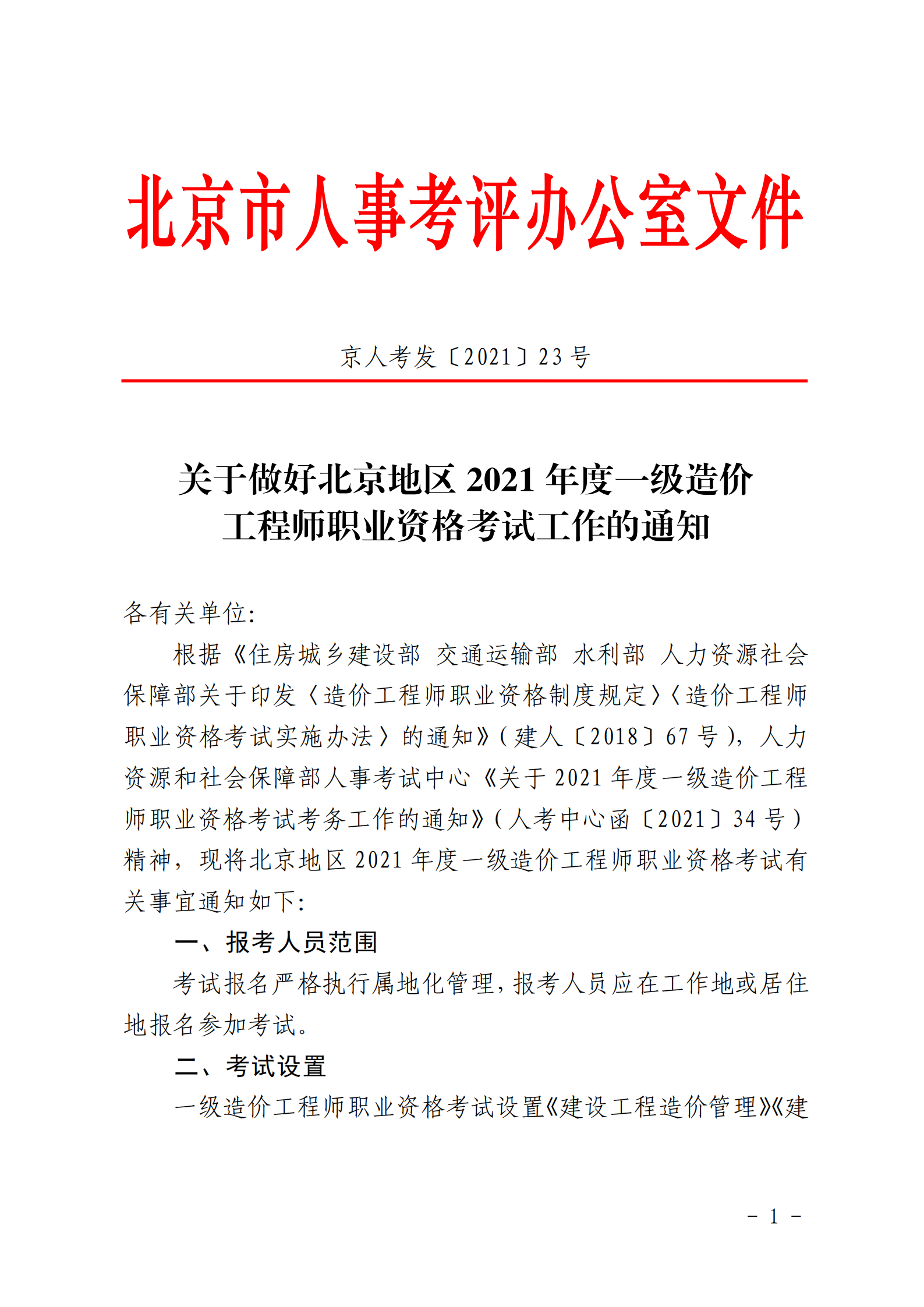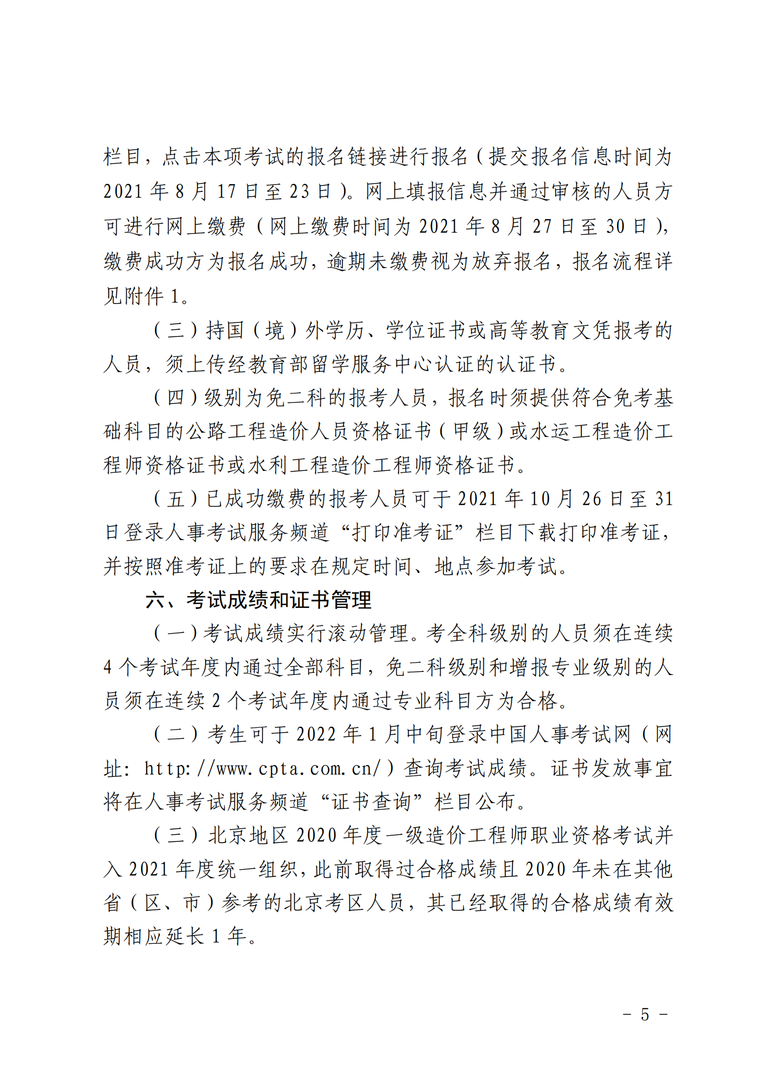 北京市2021年一級造價工程師考試報名時間為8月17日至23日