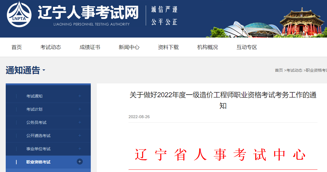 遼寧2022年一級(jí)造價(jià)工程師考試考務(wù)工作 8月31日-9月7日