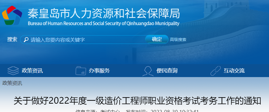 秦皇島2022年一級造價工程師職業(yè)資格考試考務(wù)工作的通知
