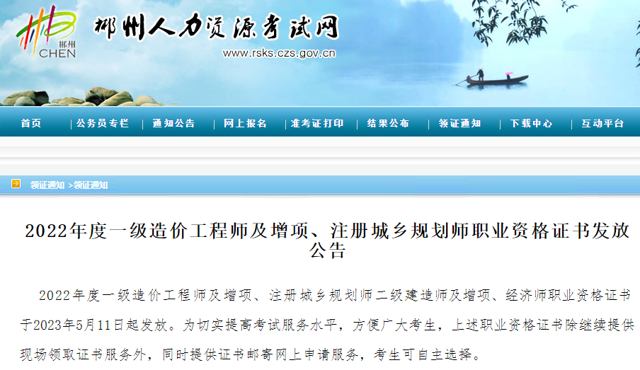 湖南郴州2022年一級造價工程師及增項職業(yè)資格證書發(fā)放公告