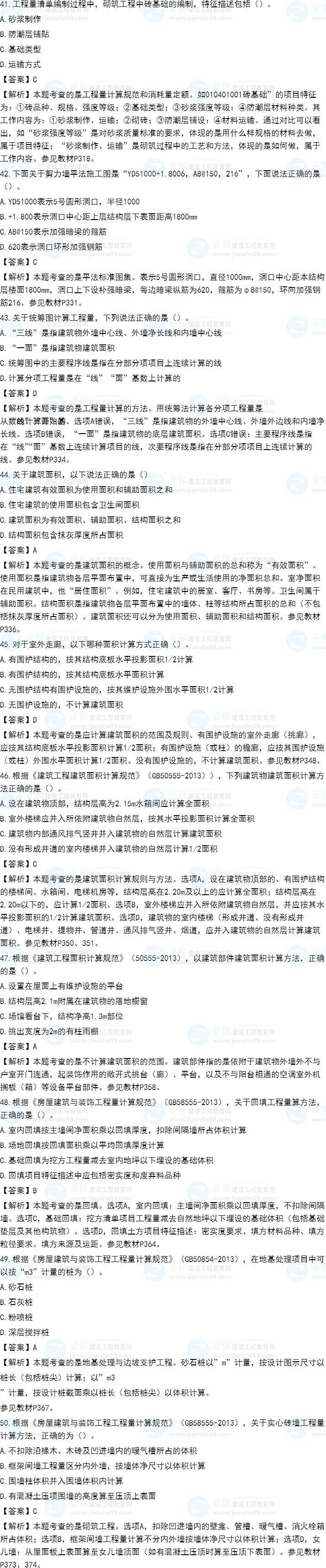 2021年一級(jí)造價(jià)師《土建計(jì)量》試題答案及解析41-50