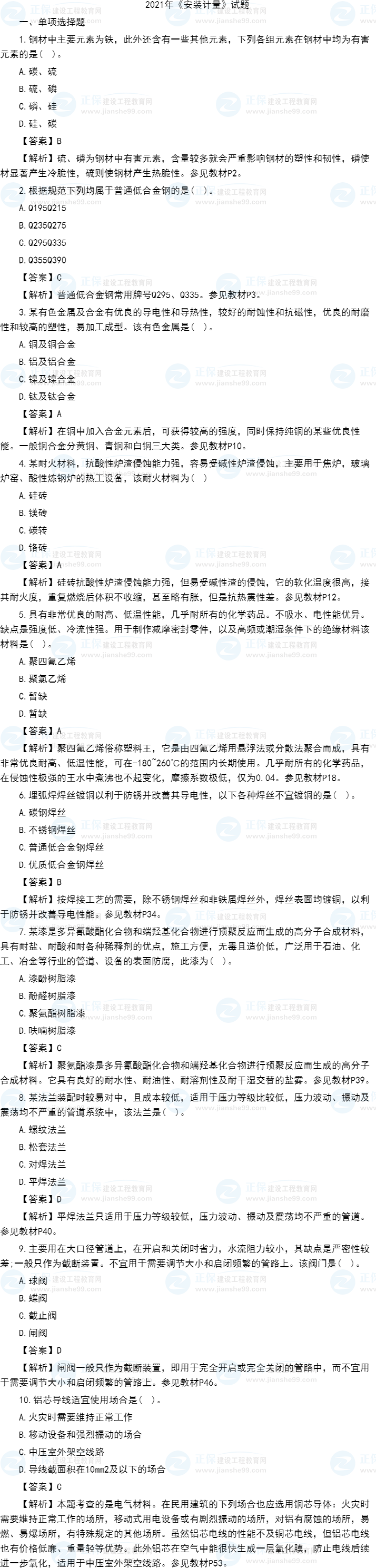 2021年一級造價師《建設(shè)工程技術(shù)與計量(安裝)》考試完了,考的怎么樣呢?是不是想找人交流一下考試題目的答案呢?想對答案的,可以在這里交流一下哦!這里不僅有考試試題及答案解析,還能與眾多小伙伴們交流做題過程及考試心得,建設(shè)工程教育網(wǎng)考后根據(jù)學員反饋,及時匯總2021年一級造價師《安裝計量》試題及答案分享給大家,并且會及時做出答案解析,希望能為廣大一造考生朋友帶來幫助。