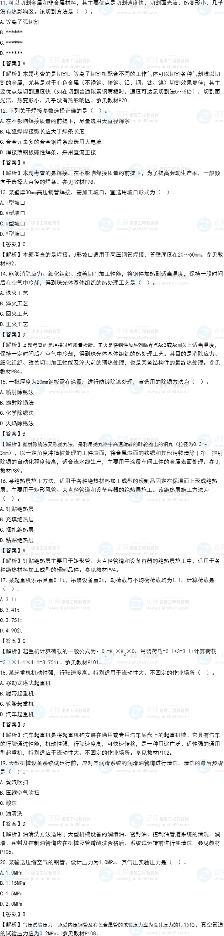 2021年一級造價師《安裝計量》試題答案及解析11-20