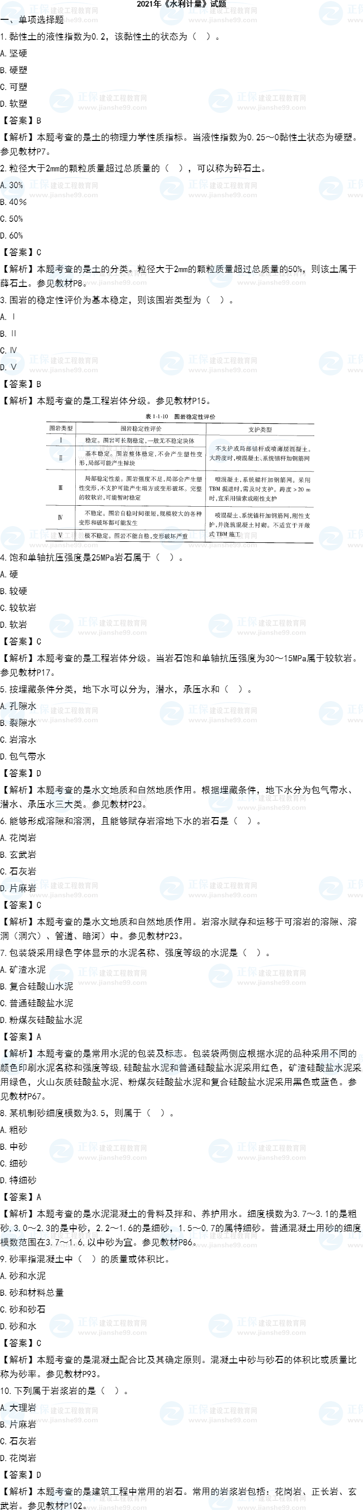 2021年一級造價師《水利計量》試題答案及解析1-10