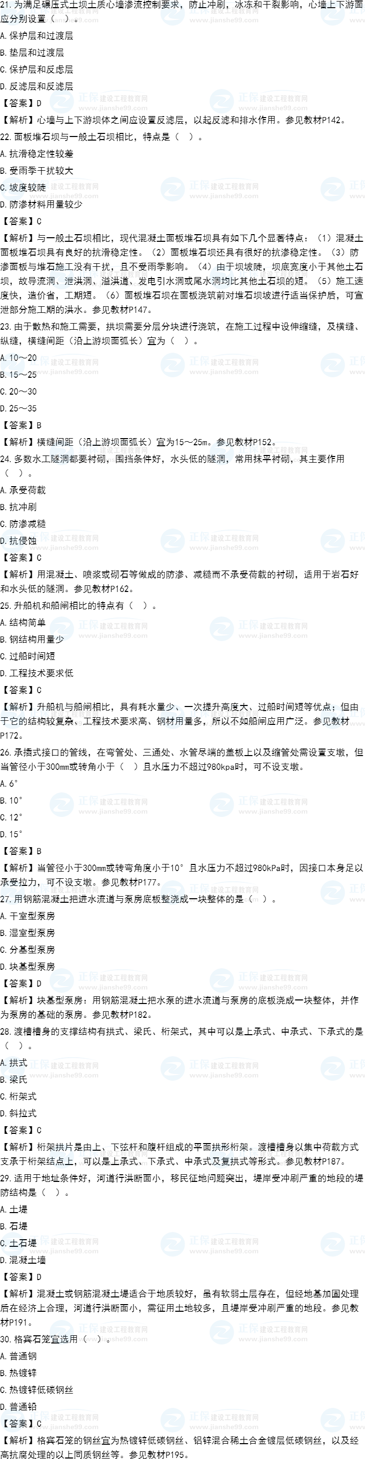 2021年一級造價師《水利計量》試題答案及解析21-30