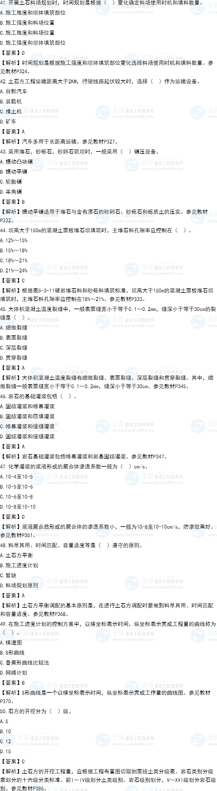 2021年一級造價師《水利計量》試題答案及解析41-50