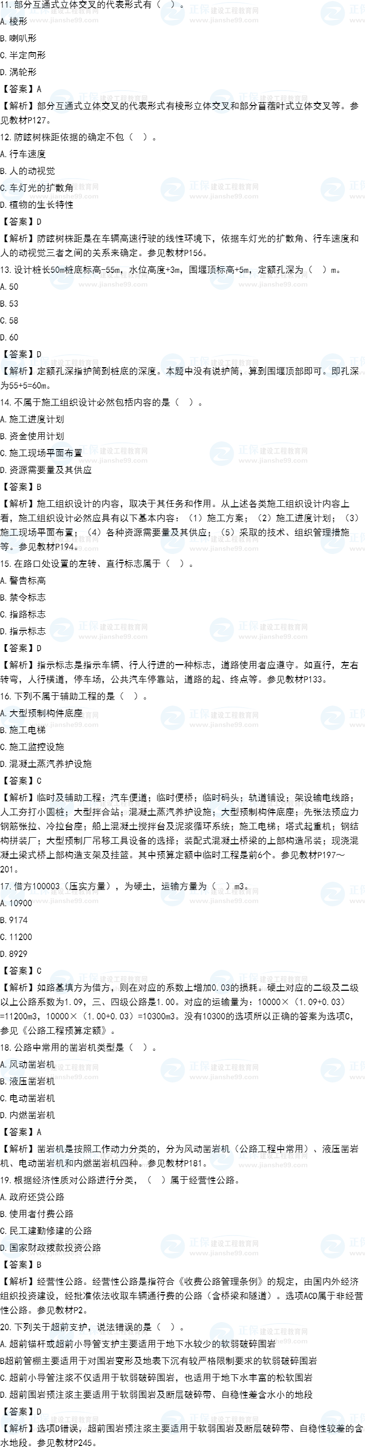 2021年一級造價師《交通計量》試題答案及解析11-20