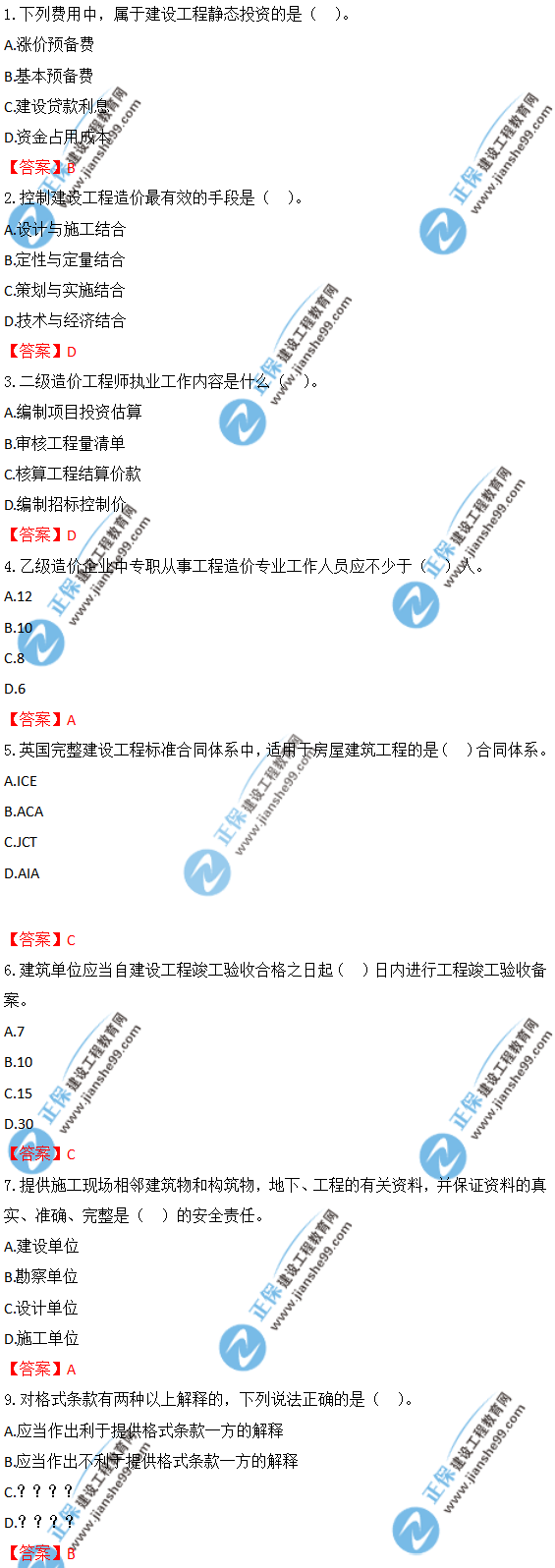 以上就是為大家分享的2019年一級(jí)造價(jià)師《建設(shè)工程造價(jià)管理》試題及答案解析1-10,建設(shè)工程教育網(wǎng)將持續(xù)關(guān)注2020年一級(jí)造價(jià)師考試的相關(guān)信息。更多2020年一級(jí)造價(jià)師考試內(nèi)容,盡在建設(shè)工程教育網(wǎng)一級(jí)造價(jià)師欄目!